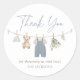 Say thank you to friends and family for attending your baby shower with these baby clothes themed stickers.