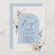 Blue Boho Floral Pampas Grass Baby Shower Boy Invitation