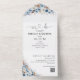 Blue Boho Floral Wedding All in One Invitation. This stylish & elegant Bridal Shower Invitation features gorgeous hand-painted watercolor Blue Boho Floral. Find matching items in the Blue Boho Floral Collection.
