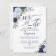 This beautiful wedding vow renewal invitation features a rustic boho chic design with hand painted watercolor roses in shades of dusty blue, navy, and indigo. The text reads "we still do" and is written in elegant script calligraphy. Beautiful way to invite your friends and family to share in your joy as you reaffirm your love for each other. The back has RSVP information including a QR code so your guests can respond online. Just enter your RSVP website address and Zazzle will create the QR code for you!