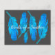 Blue boho watercolor feather art postcard