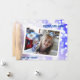 Personalised Christmas cards. Pretty blue bokeh and white Christmas tree photo holiday card.