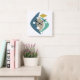 This funky mid century modern wall clock features boomerangs, circles, and diamond shapes in a combination of the colours turquoise, blue, tan, gold, and black. This will make a fabulous statement on your wall.