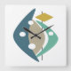 Blue Boomerangs Mid-century Modernism Square Wall Clock