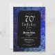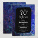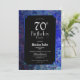 A black 70th birthday party invitation featuring a rich blue painted border.