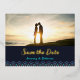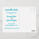 Save the date postcard with space for photo and has an elegant blue background. Customise.