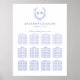 This elegant wedding seating chart features a white background with a monogram surrounded by a botanical crest/frame with a ribbon in blue. Personalise it for your needs. You can find matching products at my store.