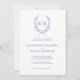 This elegant wedding invitation features a white background with a monogram surrounded by a botanical crest/frame with a ribbon in blue. Personalise it for your needs. You can find matching products at my store.