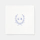 This elegant wedding paper napkin features a white background with a monogram surrounded by a botanical crest/frame with a ribbon in blue. Personalise it for your needs. You can find matching products at my store.