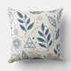 A seamless pattern throw pillow combining stylised botanical and geometric elements in calming shades of blue, white, and muted beige. Featuring hand-drawn leaves, abstract floral motifs, concentric circles, triangles, stars, and dotted accents, this design blends organic and celestial themes. Its clean, minimal, and doodle-inspired style makes it ideal for modern home décor lovers, botanical art fans, and creatives who enjoy a serene aesthetic. Perfect gift for artists, designers, and anyone who appreciates elegant patterns. Ideal for spring, summer, nature-inspired events, and everyday décor.