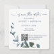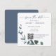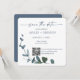 Blue Botanical Leaf Save the Date w/QR Code+Image Invitation