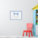 This elegant horizontal sign features a soft blue watercolor bowtie-style bow at the top, framed by cute blue and white stripes around the edges. The grey fonts combine script and serif typography for a timeless and charming look. The design includes a delicate double-line border, which can be customised by changing the background or line colours to match your baby shower theme.