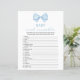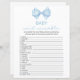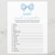This baby shower word scramble game is perfect for a baby shower or baby sprinkle. This word scramble game features a blue watercolor coquette bow on the front and back. You can personalise this design by clicking on "Personalise this template" or if you wish to change the font, colours or arrange the design elements in a different way you can click on "Edit using Design Tool". Answer Key: 1. Diaper 2. Bassinet 3. Bottle 4. Crib 5. Pacifier 6. Changing Table 7. Stuffed Animal 8. Stroller 9. Rubber Ducky 10. Blanket 11. Teether 12. Formula 13. High Chair 14. Mobile 15. Thermometer 16. Baby 17. Milk 18. Booties 19. One-sie 20. Teddy Bear