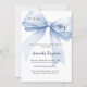An elegant white background, decorated with a large blue bow. Personalise and add a name and party details.