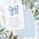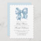 A cute and and classic blue bow baby shower theme featuring an adorable baby blue watercolor bow. A simple and minimal classic baby shower look. Gray text in a mix of serif font and script typography. Celebrate the mom to be in style! You can change the font colors out to whatever you'd like. You can also change the background color on the front and back. Simple Watercolor Blue Bow Boy Baby Shower Invitation.