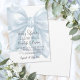 This Chic Oversized Bow Baby Shower Invitation features a bold blue bow that takes center stage, covering nearly the entire design. The bow makes a refined statement, complemented by the simple "Baby Shower" at the top, displayed in a mix of soft gray handwritten script and classic serif fonts. The blue background, with subtle off-white accents, adds a modern, elegant touch—perfect for a baby boy shower or for a mom-to-be who loves blue.