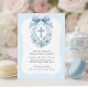Celebrate your baby boy’s baptism with this elegant blue invitation featuring a watercolor floral wreath, cross, and soft ribbon bow. Perfect for christenings or naming ceremonies. Fully customisable with editable text and details. A beautiful keepsake for a meaningful day.