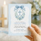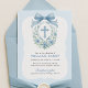 Blue Bow Boy Baptism Invitation with Cross Wreath