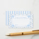 The Blue Bow Bridal Shower Date Night Ideas Enclosure Card exudes an enchanting blend of vintage charm and modern elegance, captivating hearts with its timeless allure. With its shabby chic aesthetic and delicate blue bows, it sets the stage for a celebration filled with romance and whimsy, evoking images of love blossoming amidst the rustic elegance of a bygone era. The vintage-inspired frame adds a touch of nostalgia, framing the item with a sense of old-world charm and sophistication, while the inclusion of blue roses infuses the design with the sweet fragrance of blooming love. At the heart of the item lies the coquette allure, inviting guests to indulge in the playful and flirtatious ambiance of the gathering. With its modern twist on classic elegance and timeless motifs, this item is a testament to the enduring power of love and the joy of celebrating life's most precious moments. Click on the “Customise it” button for further personalisation of this template. You will be able to modify the style, colours, and sizes. Matching items available.