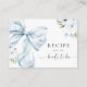 Blue Bow Bridal Shower Recipe Request Enclosure Card