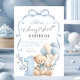 Blue Bow Coquette Beary First Birthday Invite ,Teddy Bear Birthday Invitation, Editable Floral butterfly First Birthday