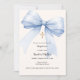 Blue bow cream boy Baptism Invitation
