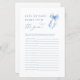 Add some fun and laughter to your bridal shower with the "Blue Bow Does The Bride Really Know The Groom?" game. Featuring a charming blue bow design and elegant typography, this game invites guests to test how well the bride knows her groom. With playful, thought-provoking questions, it brings out plenty of laughs and sparks lively conversation among guests. Perfect for adding a touch of fun to your bridal shower while maintaining an elegant and stylish atmosphere, this game will create unforgettable memories as you celebrate the bride and groom's love!
