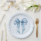 Blue Bow Elegant calligraphy Boy Baby Shower Paper Plate