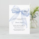 An elegant white background, decorated with a large blue bow with pearls. Personalize and add a name and party details.