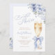 Blue Bow Floral Champagne Bridal Shower Invitation