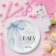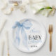 Blue Bow Hand Drawn Script Baby Boy Shower Paper Plate