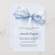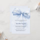 A soft, light blue background, decorated with a large blue bow. Personalise and add a name and party details.