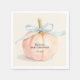 A cute pumpkin, tied with an elegant blue ribbon, highlights these boy baby shower napkins, featuring the mother-to-be's name and baby shower date. (Available in pink and ivory, too.) MATCHING items in our collection.