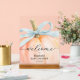 A cute pumpkin, tied with an elegant blue ribbon, highlights this boy baby shower clear acrylic Welcome sign, featuring the mother-to-be's name and baby shower date. (Available in pink and ivory, too.) MATCHING items in our collection.