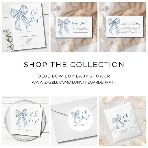 Blue bow oh boy baby shower invitation. Easy to change the text. Cute design for a baby shower.