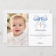 Thank your guests with this elegant boy baptism thank you card featuring a soft blue bow and gold cross design. This personalized baby boy christening thank you card includes space for a photo and custom message, making it a beautiful keepsake from your child’s special baptism day.