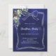 For a Christmas party with family and friends.. Decorated with a white simple hand-drawn bow, greenery and a pine cone. Personalise and add the details. Christmas party with a heart. A navy blue, uneven coloured background.