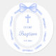 Blue Bow Ribbon Frame Baptism Classic Round Sticker