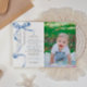 Celebrate the sacred occasion of First Communion with this Blue Bow & Rosary Photo First Holy Communion Invitation. Featuring an elegant blue bow and a graceful rosary motif, this design blends sophistication with spiritual meaning. Perfect for christenings, baptisms, or religious ceremonies, this fully customisable template allows you to personalise every detail.