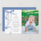 Blue Bow & Rosary Photo First Holy Communion Invitation