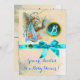 Elegant ,colourful,vibrant vintage style teal blue white design with a baby and flying stork by Bulgan Lumini (c). Easy to customise with your own text for announcements save-the-date ,thank you, baby showers,child's birthday parties , or just about any event you wish!