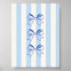 A charming design featuring three blue bows on a vertical striped background. Perfect for nursery décor, girly room accents, or as a sweet gift for bow lovers. Matches well with grandmillennial and preppy styles.