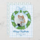 Share your holiday cheer with this charming Blue Bow Wreath Photo Christmas Card, featuring a classic gingham background and a beautifully illustrated wreath tied with a soft blue ribbon. Designed to showcase your family photo, this preppy and grandmillennial-inspired style brings a timeless, elegant touch to your festive greetings.