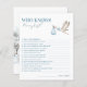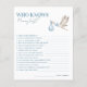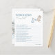 Add fun to your shower with this blue stork winter Who Knows Mummy Best game. Featuring a sweet stork illustration with a snowy winter village, this printable game is a perfect activity for a boy baby shower. Guests can guess mummy’s favourites and learn more about her while creating laughter and memories. A charming addition to your winter stork baby shower theme, this game coordinates beautifully with invitations, thank-you cards, and signs for a cohesive celebration.