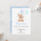 Blue Boy Teddy Bear Balloon First Birthday Invitation