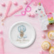 Blue Boy Teddy Bear Bearly Wait Baby Shower Paper Plates features an adorable watercolor illustration of a teddy bear on a blue hot air balloon.