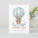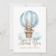 Blue Boy Teddy Bear Moon Stars Baby Shower Thank You Card features an adorable watercolor illustration of a teddy bear on a blue hot air balloon.