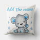 Blue Boy Teddy Bear with Name Stars Throw Pillow