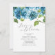 Enhance your bridal shower with our floral invitations, featuring a border of hand-painted watercolor hydrangeas in shades of blue. The trendy script typography "Love is in Bloom" adds a touch of modern elegance, while your event details are displayed in a chic sans serif and hand-lettered script type. The reverse side of the card features a photo of the bride to be. Perfect for garden-themed luncheons or brunch and bubbly bridal showers. Explore the matching theme by Victoria Grigaliunas at https://www.zazzle.com/collections/blue_petals_and_prosecco_bridal_shower-119317453494662805