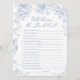 Blue Bridal Shower Who Knows Bride Game Card